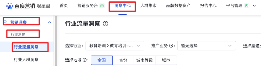 a)入口:觀星盤>洞察中心>營(yíng)銷洞察>行業(yè)洞察>行業(yè)流量洞察