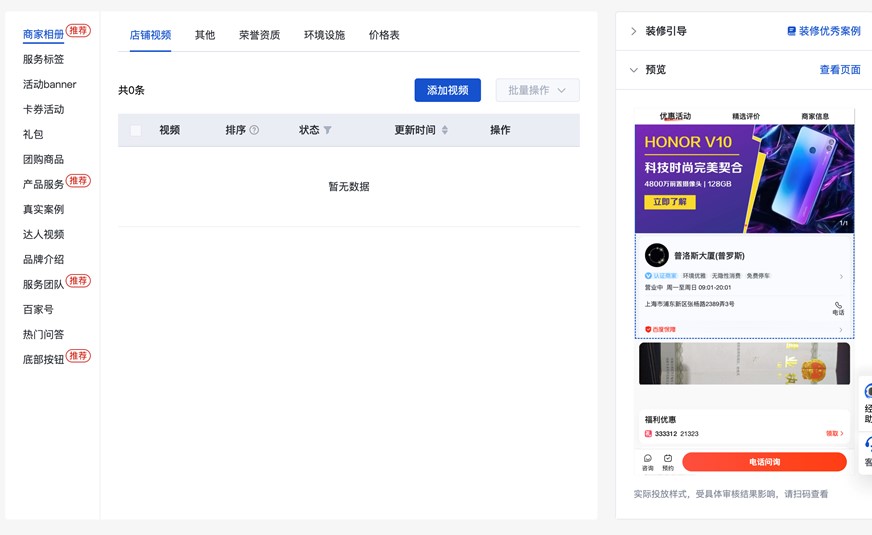 - 分行業定制規則:根據店鋪類目特征擬定不同評估規則,不同類目店鋪在視頻、服務團隊、真實案例、卡券等特征上有不同要求