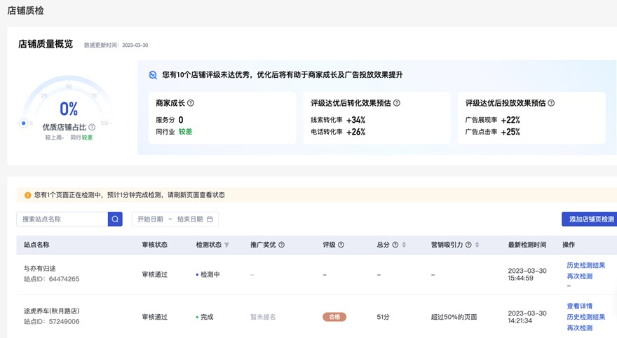 - 店鋪名稱檢測:店鋪名稱存在營銷性問題或長度不在合理區間內,含此類問題時質檢評級直接定為不合格