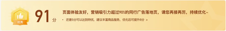 - 優化后可提升分數:指標未達標時,細則文案中將披露該項指標優化預期提升的分數,可優先優化可提升分數更多的指標