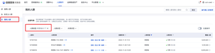 入口:觀星盤>人群集市>我的人群(篩選用戶屬性人群更便于快速查看)