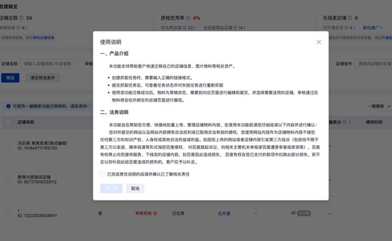 - 教育或家裝類目店鋪,在店鋪-店鋪管理,展示【一鍵搬家】按鈕