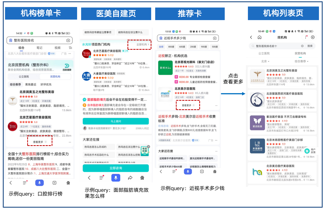 整形美容行業客戶支持購買本地店鋪會員(下文簡稱為醫美搜索會員),為購買了會員的客戶提供本地搜索流量。當用戶在百度APP搜索醫美相關關鍵詞時將有機會展現客戶阿拉丁卡片,向用戶推薦客戶產品。覆蓋整形美容全行業,包括口腔、眼科、整形美容綜合、植發。