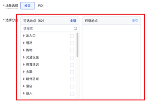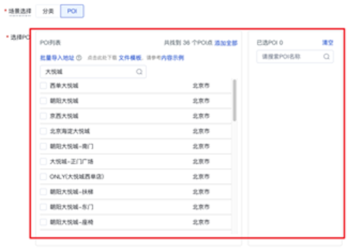 為進一步滿足廣告主精細化人群定向需求,觀星盤接入用戶尋址屬性數(shù)據(jù),支持按尋址地點類型或?qū)ぶ肪唧wPOI點位進行人群圈選,滿足廣告主基于用戶真實地域搜尋意圖進行廣告精準投放訴求,同時可對該類尋址意圖行為人群進行畫像洞察。