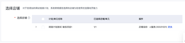 Step3:若生效范圍中選擇了網站鏈接計劃,需要為計劃下的單元選擇關聯店鋪。