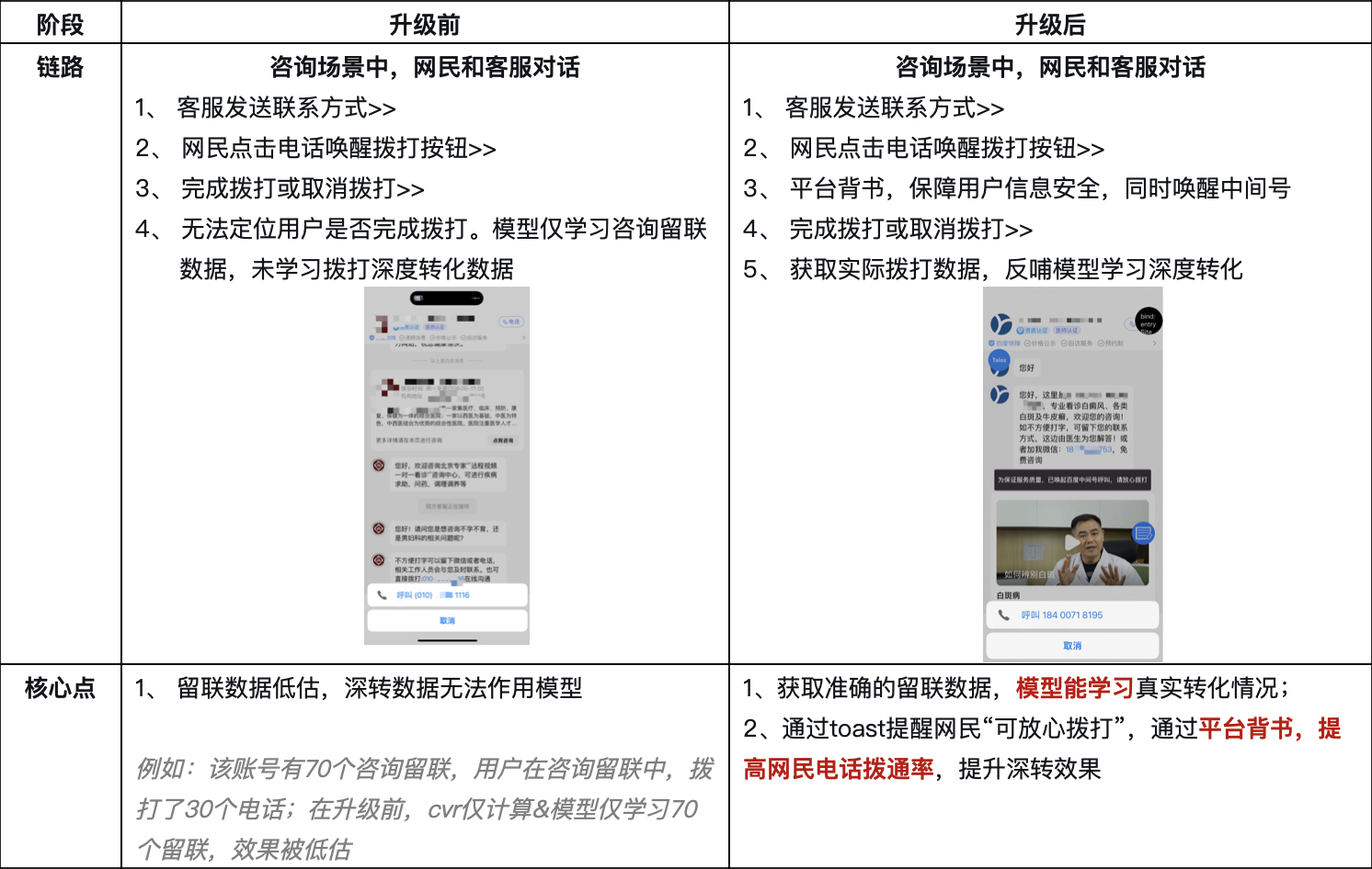 收益1:獲取準(zhǔn)確的留聯(lián)數(shù)據(jù),模型能學(xué)習(xí)真實(shí)轉(zhuǎn)化情況,商家電話線索量+28.7%