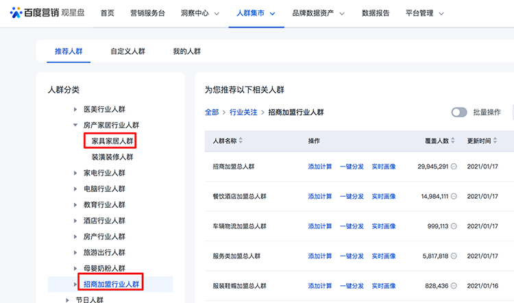 招商加盟行業(yè)80個人群上線, 房產(chǎn)家居-家具家居行業(yè)16個人群上線