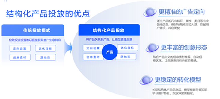 在百度營銷信息流推廣中,有越來越多行業具備行業特色的結構化產品設置和管理能力,支持客戶關聯到廣告投放方案中,提高信息流廣告投放的效果,結構化產品投放能夠提供更精確的廣告定向、更豐富的創意形態,讓模型更懂生意,是信息流廣告優化的重要手段。